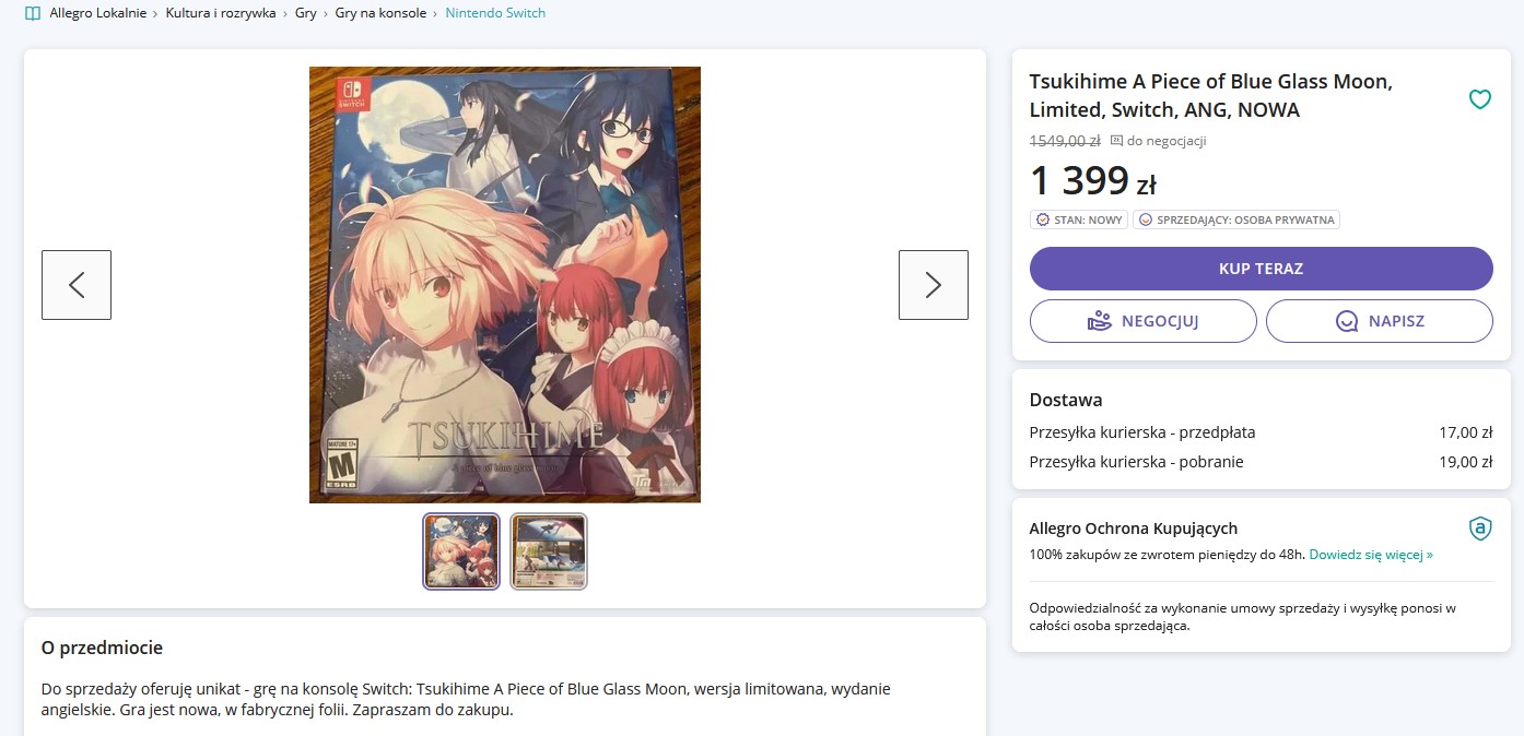 do tego wersja fizyczna na rynek zachodni i azjatycki zostały wydane w jakimś absurdalnie niskim nakładzie, więc o ile wydanie fizyczne się pojawi to kosztuje w okolicach 300zł