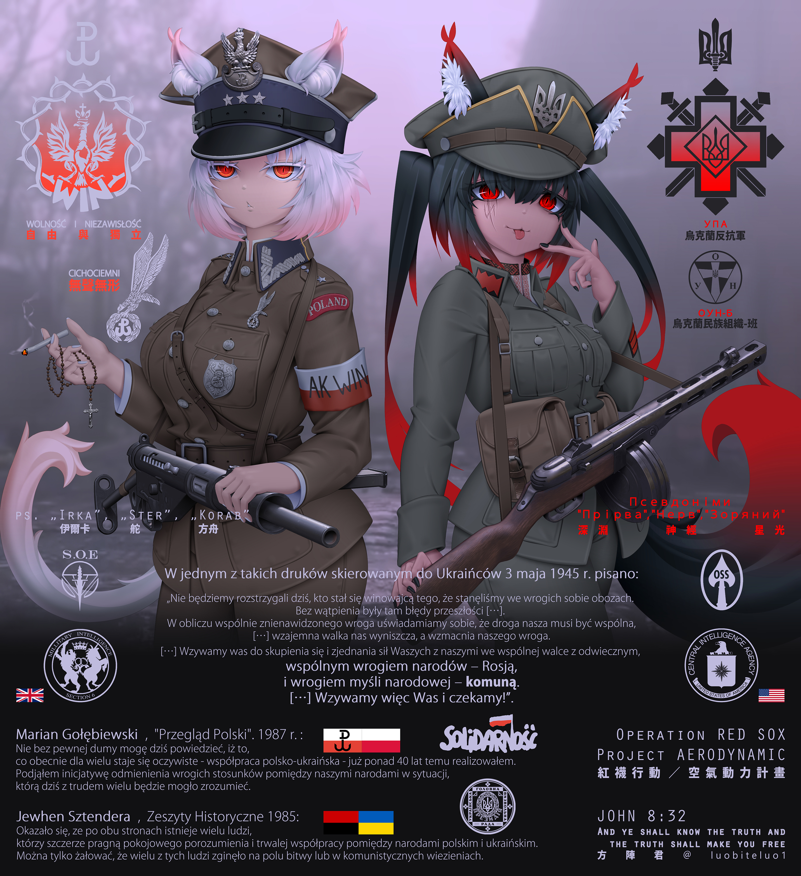 podoba mu się motyw partyzantów antykomunistycznych, więc zaczął rysować coś od siebie. ewidentnie jest też kimś podchodzi do tematu gruntownie, więc dodał tło historyczne w postaci cytatów różnych antykomunistów.