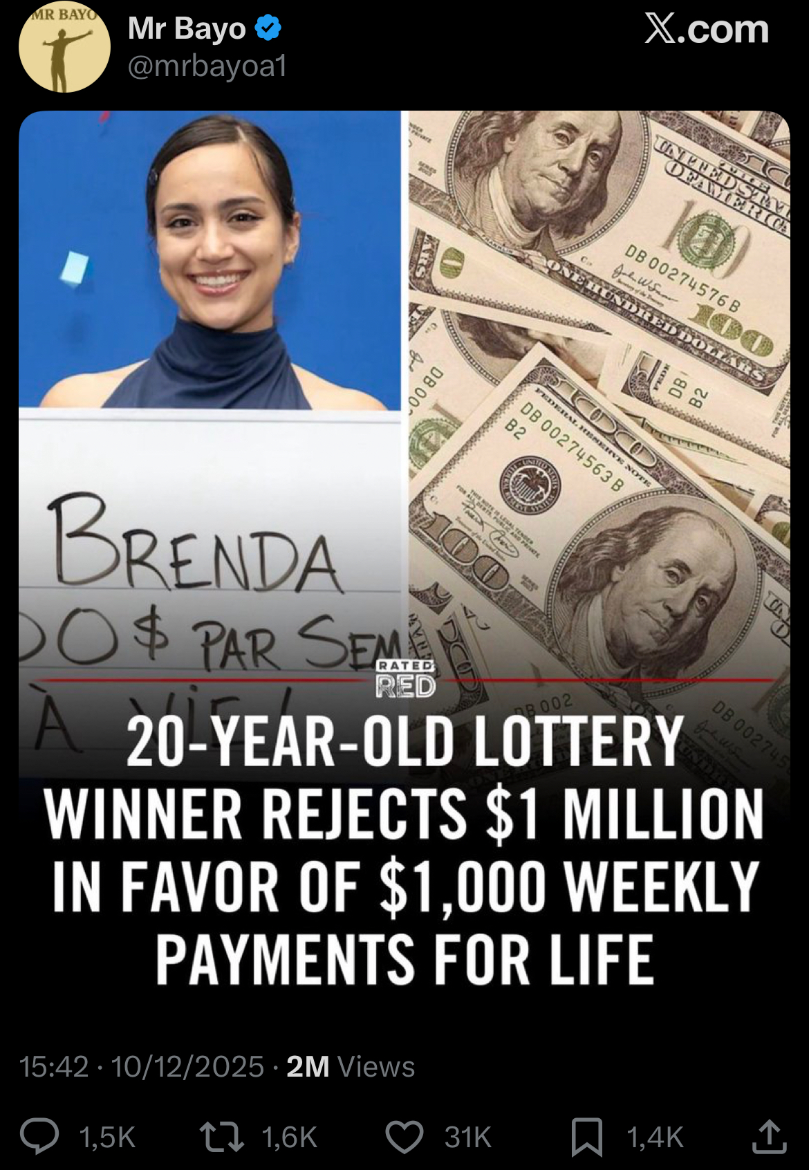 jeny ja za tysiąc dolarów miesięcznie bym sobie życie ułożył a tygodniowo to już w ogóle czułbym się jak miliarder