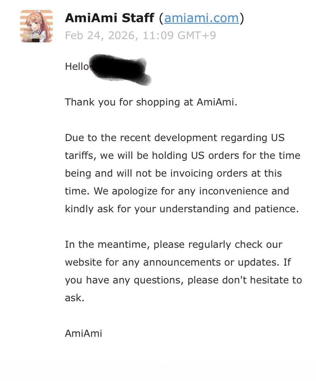 >>344708tam wyżej wrzucałem newsa, że wiele japońskich sklepów przestało w ogóle wysyłać chwilowo do US przez cyrk z cłami Trumpa i czekają az sytuacja się wyjaśni xD