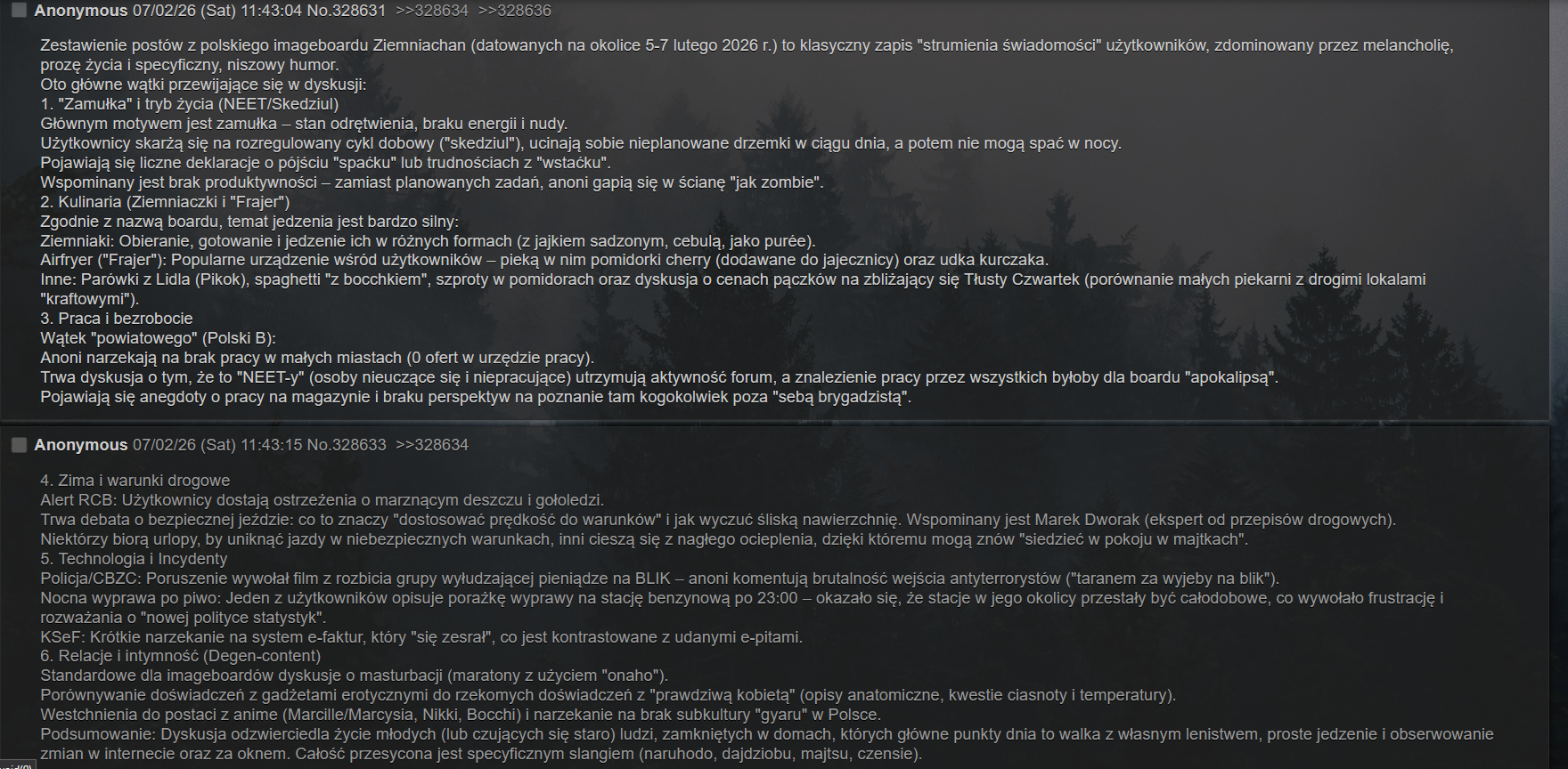 jedną z największych zalet ziemniaczka na chwilę obecną jest to, że można zalinkować do "żyjącego" (jeszcze) internetu i do jakichś spraw aktualnych czy bieżących i mode nie da ci perma a użytkownicy nie zwyzywają cię od oskarków i kurew. i nie muszę się zastanawiać, czy na jakimś memie nie został nie daj boże watermark czy też czy za samo wspomnienie o twitterze na którym odbywa się teraz duża cześć internetowego "życia" nie dostanę bana na pizdę
